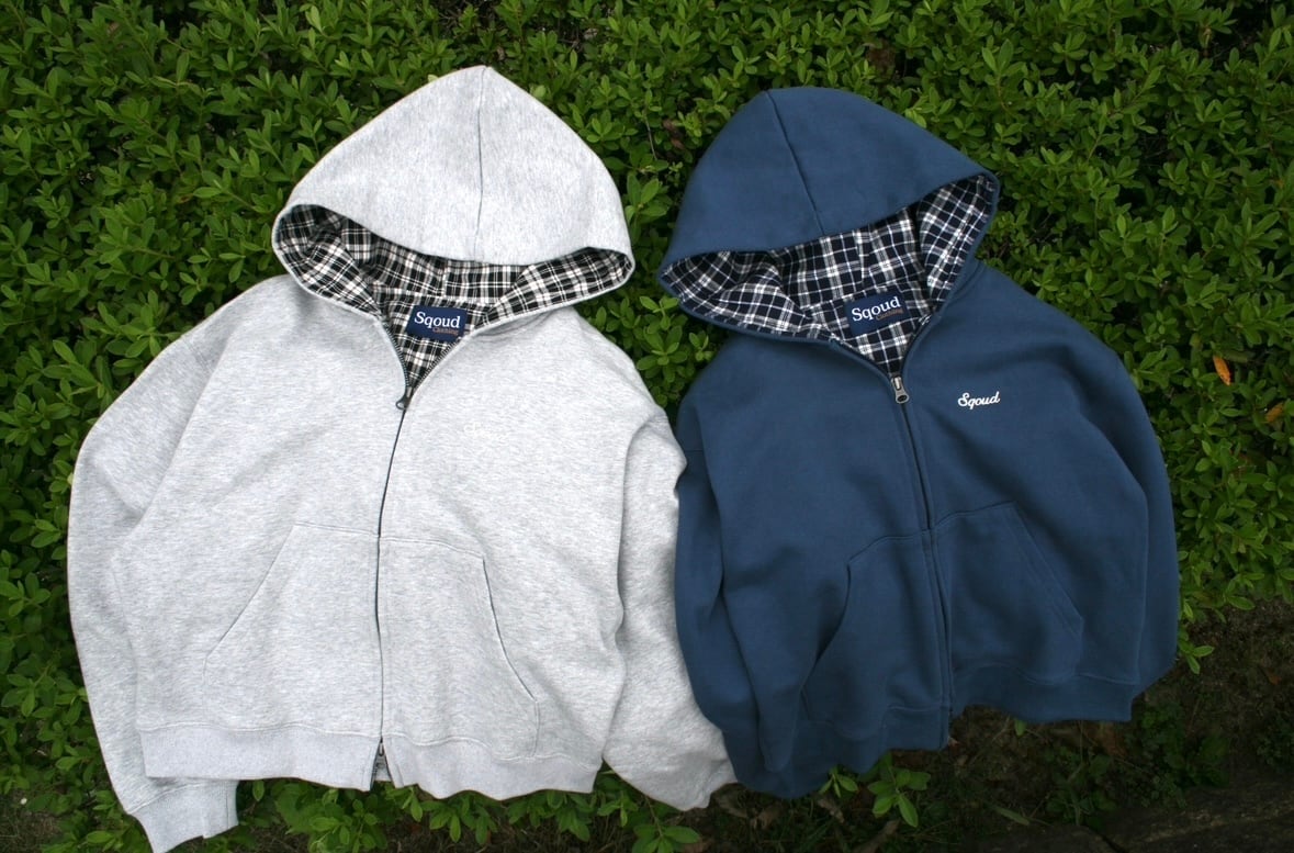 【アイテム説明】 裏地のチェックと、 短丈シルエットが特徴のジップパーカー。 フードを被ると見える「Sqoudネーム」や ダブルジップ仕様など、細部までこだわり抜いた一枚。 ほどよくゆとりのあるサイズ感で、 男女問わずユニセックスに着用可能。 秋の立ち上がりには一枚で、冬にはアウターのインナーとしても重宝します。 低身長の方でもバランスよく着られる短丈設計で、 どんなスタイルにも自然に馴染む万能フーディーです。 【素材】 表地 綿100% リブ ポリエステル65% 綿30% ポリウレタン5% 裏地 ポリエステル75% 綿25% 【サイズ表】 Sサイズ:着丈55cm/身幅55cm/肩幅50cm/袖丈56cm Mサイズ:着丈59cm/身幅59cm/肩幅53cm/袖丈57.5cm Lサイズ:着丈63cm/身幅63cm/肩幅56cm/裾幅59cm ※平置きでの採寸です。多少の誤差がある場合がございます 【サイズ選びの目安】 コンパクトな短丈設計で、好みやスタイルに合わせて自由に選べます。 Sサイズ:小柄な方や、すっきりコンパクトに着たい方に。 Mサイズ:161〜170cm前後の方に。ほどよくゆとりがありバランス◎ Lサイズ:170cm以上の方や、ゆったりと着たい方におすすめ。 ※撮影モデル:160cm/Sサイズ着用 【発送について】 平日はご注文の翌日発送を基本としています。 土日・祝日はお休みをいただいております。 ※ご注文状況や繁忙期により、発送までにお時間をいただく場合がございます。 【注意事項】 ・撮影時の光の加減やご利用のデバイスにより、実際の色味と異なって見える場合があります。 ・お客様都合による返品・交換はお受けできません。(カラー間違い・イメージ違い等)
