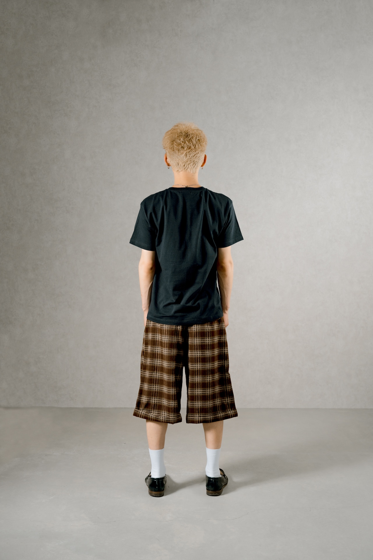 膝が隠れる絶妙な丈感に、太すぎないバギーシルエット。腰まわりはすっきり、動きやすくてリラックス。ベルトループ付き・前ボタン仕様・ヒップポケットにはブランドタグ付きで、細部にもこだわりを。