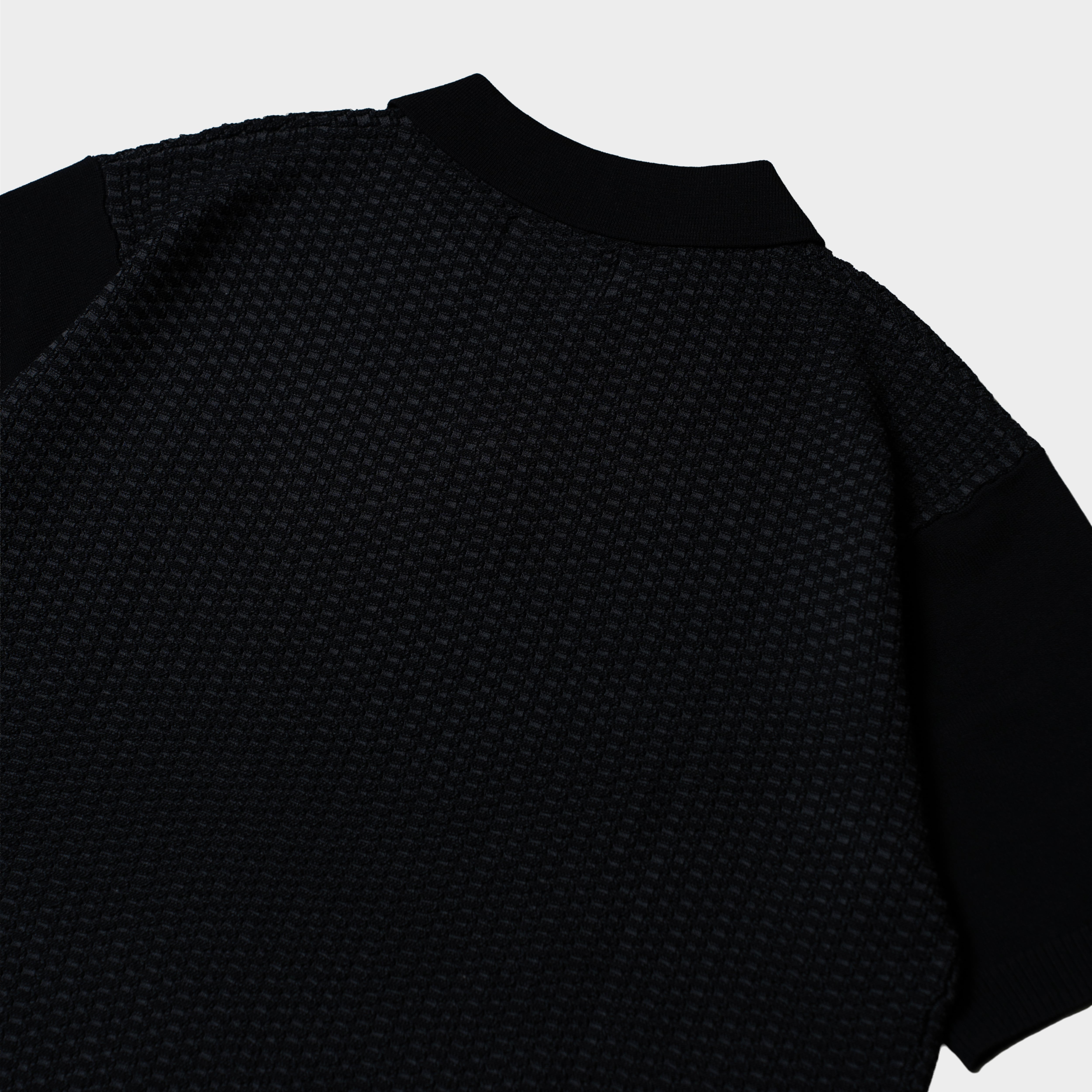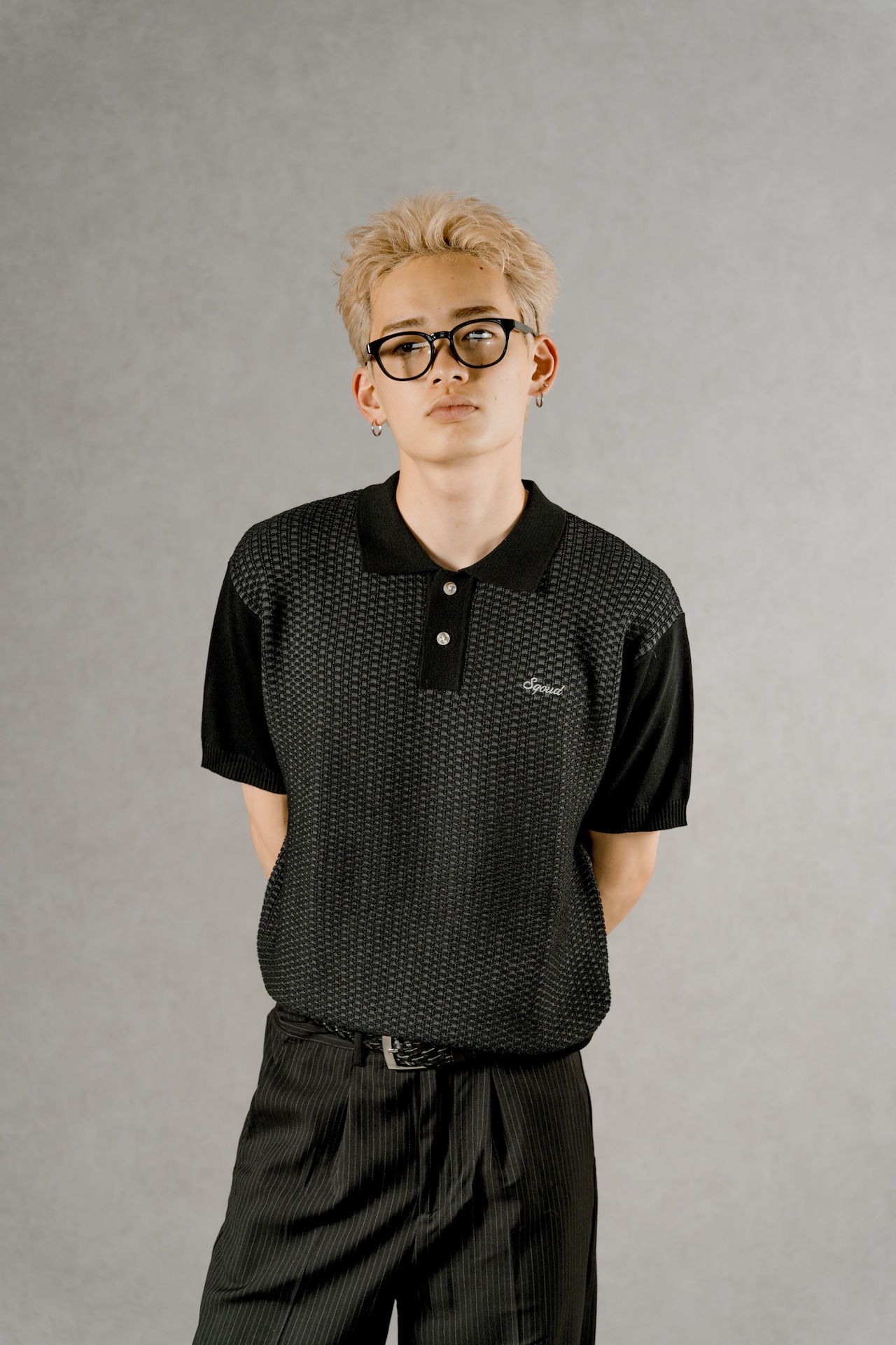 細かい凹凸が印象的な、表情ある編み地のポロニット。