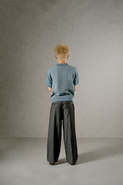 腰回りや丈に余裕を持たせており、脚のラインに沿って自然と落ちるドレープ感が魅力。