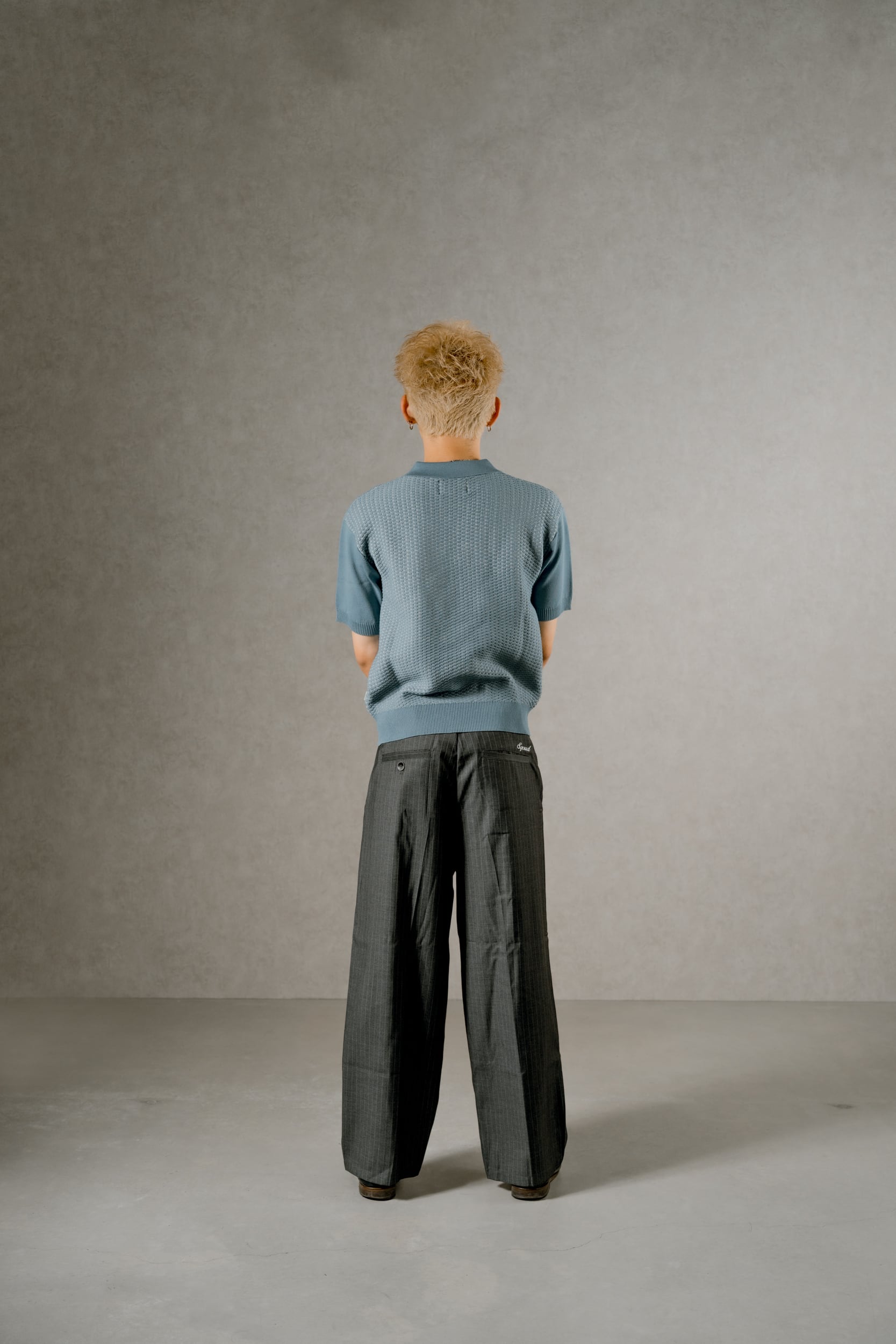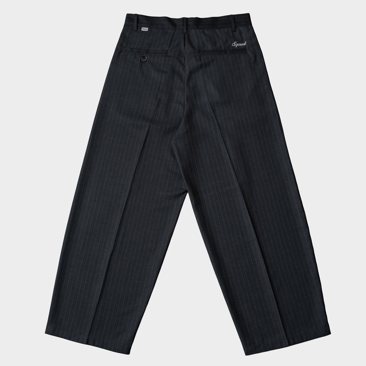 さりげないピンストライプが特徴の、上品かつ抜け感のあるワイドスラックス。