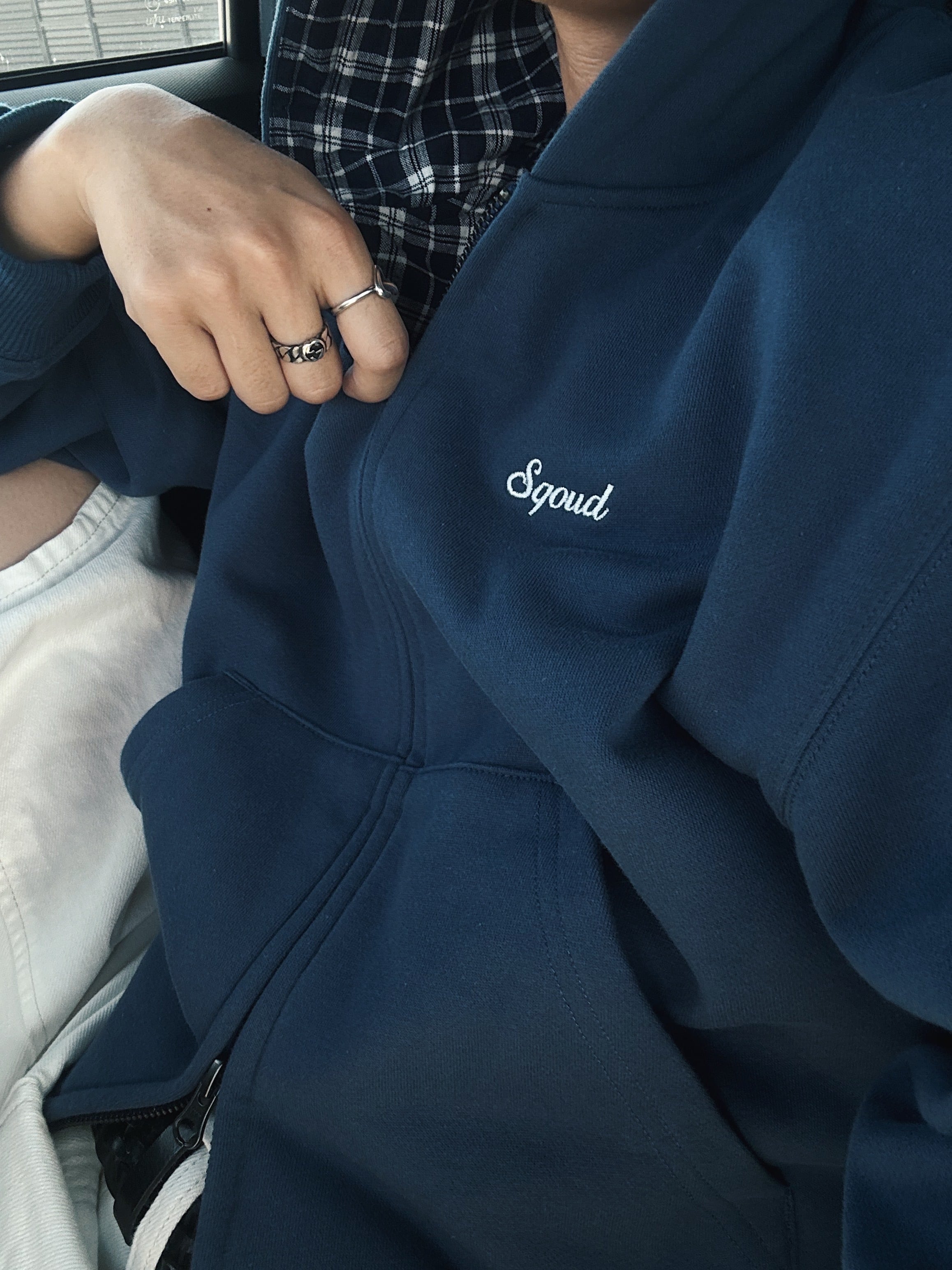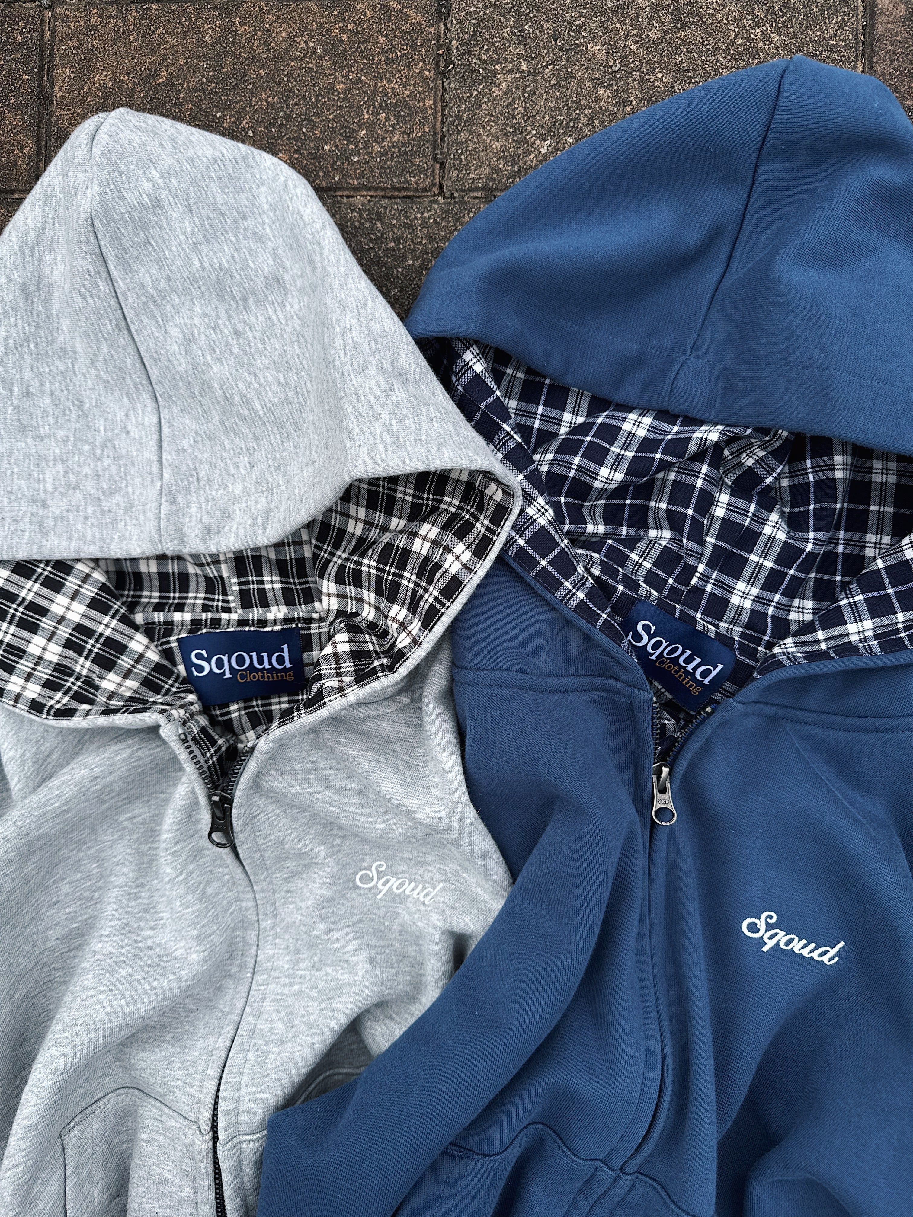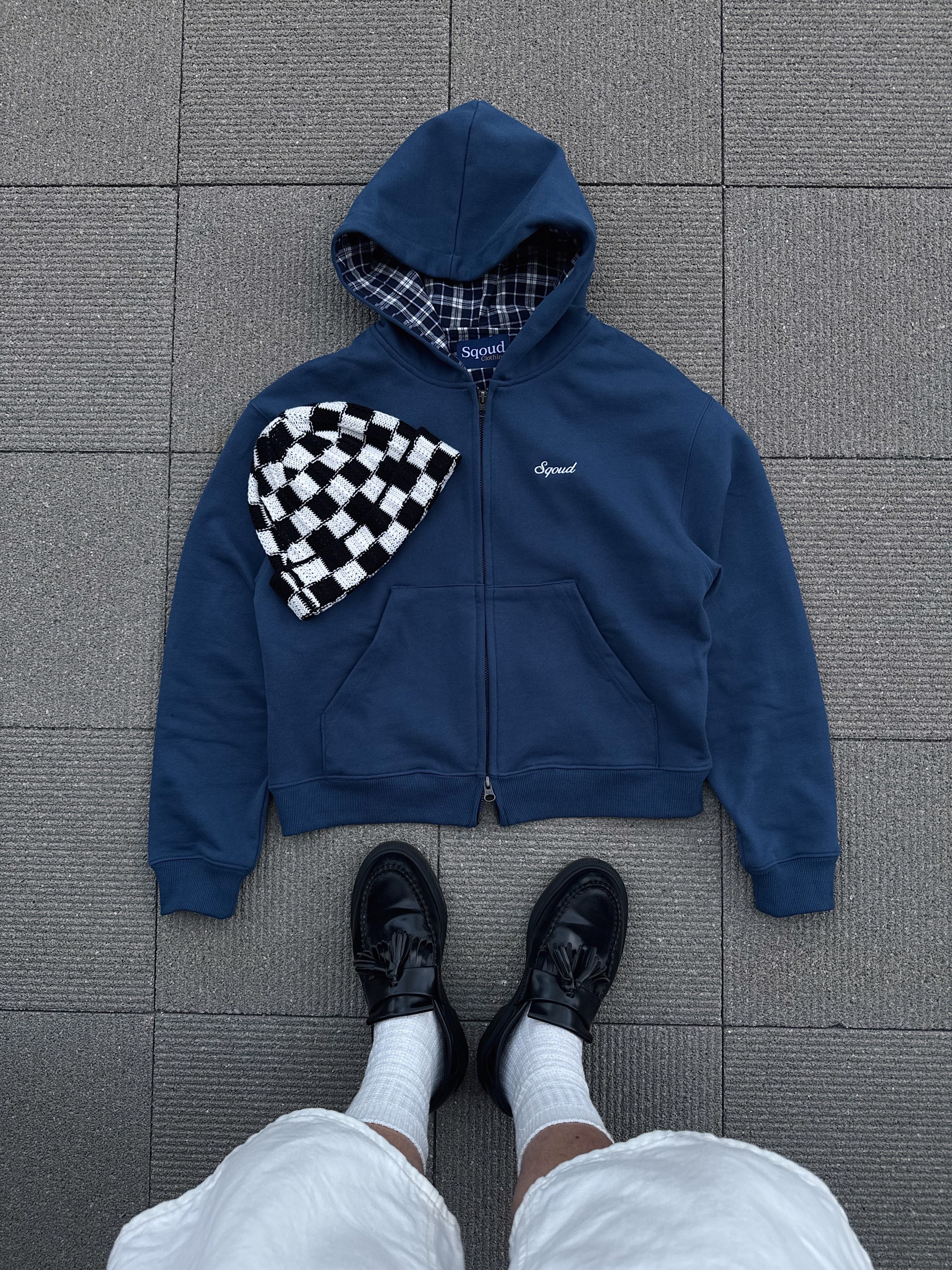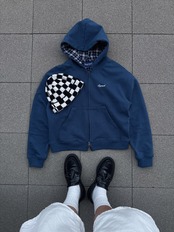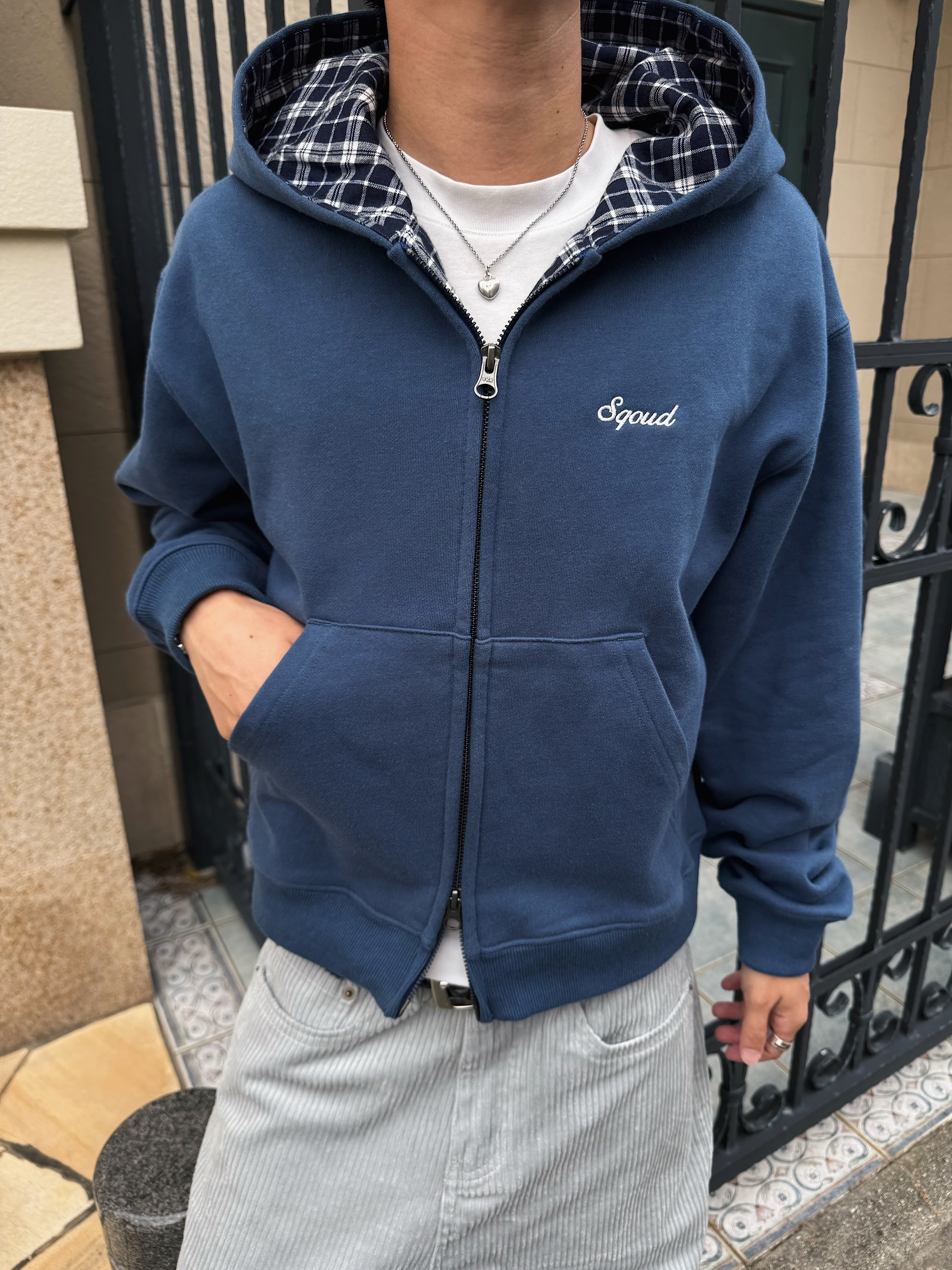 Check Lined Zip Hoodie BLUE (SQ-011 )