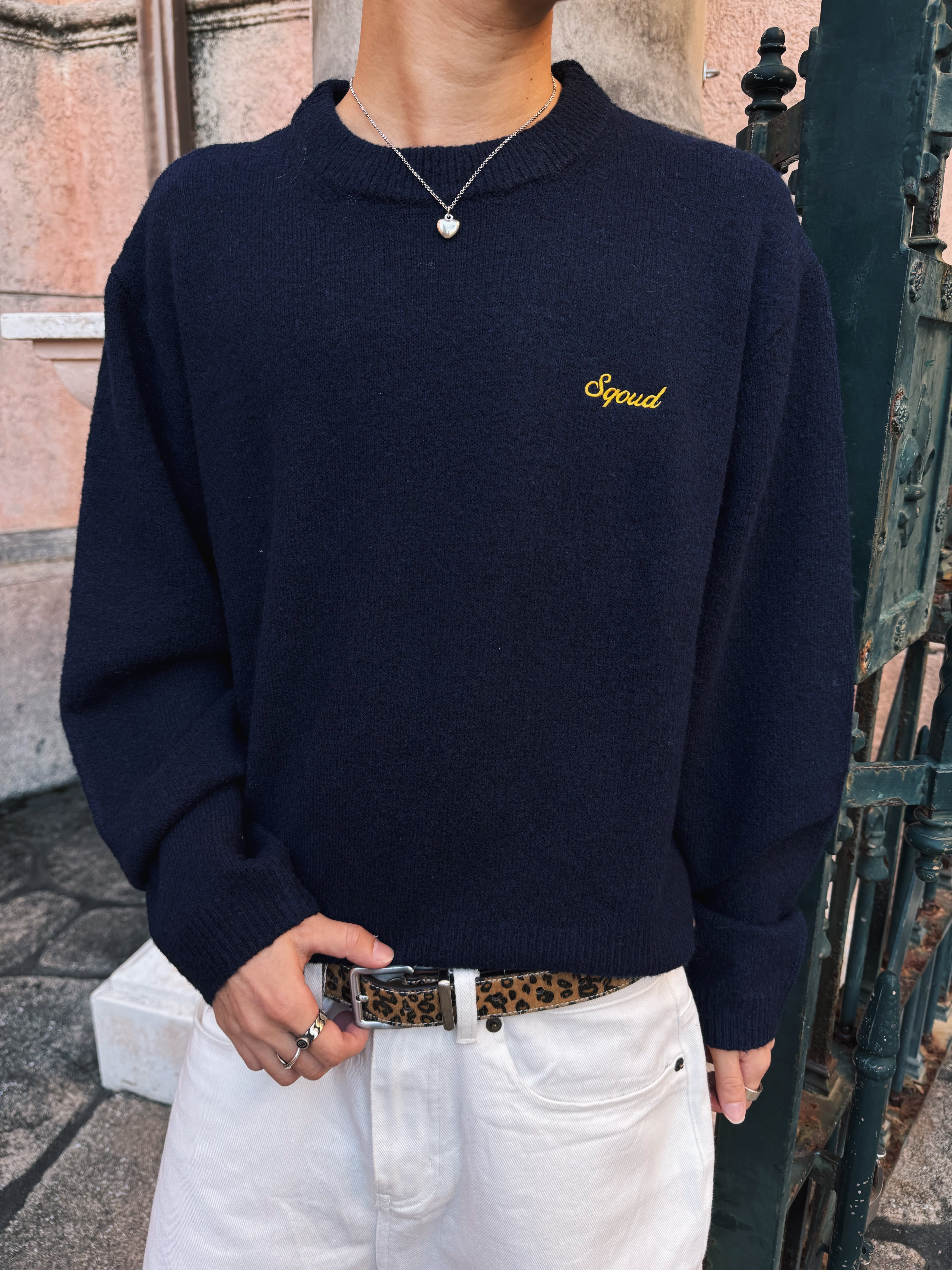糸の色が混ざり合ったSqoudらしいメランジ生地のニット。