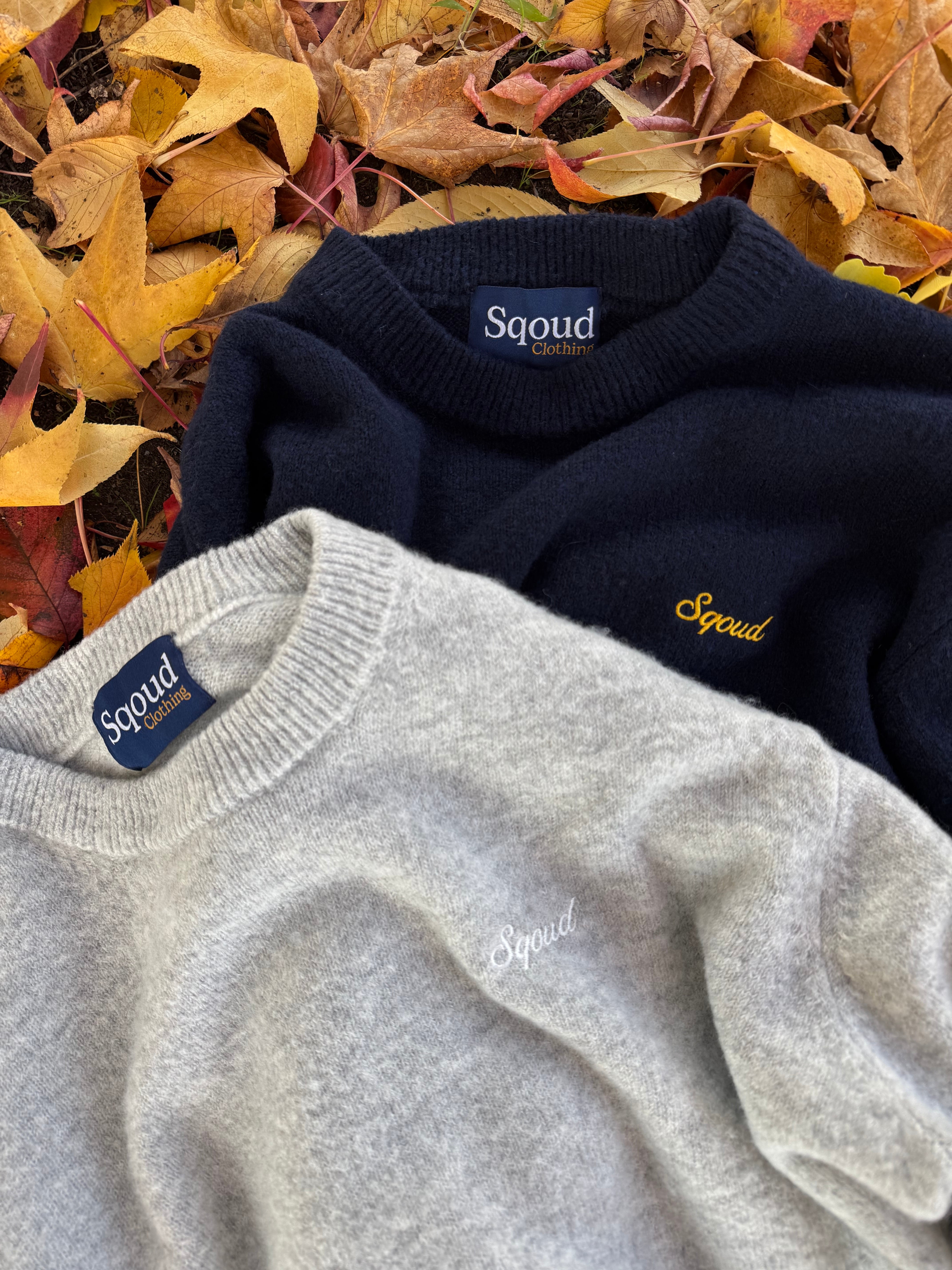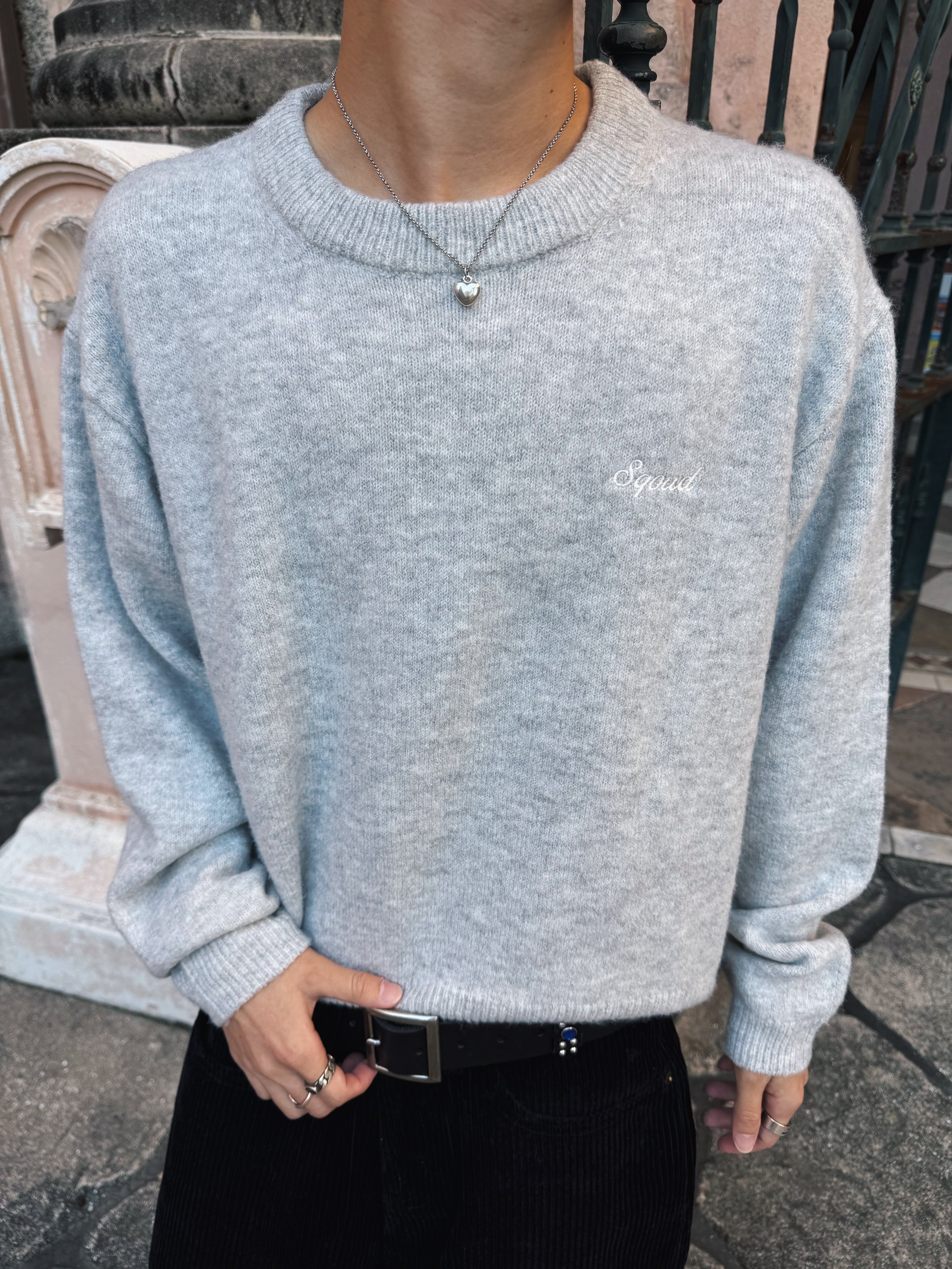 糸の色が混ざり合ったSqoudらしいメランジ生地のニット。